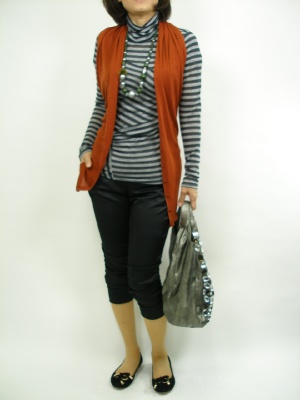 ストールやボレロとしても使える3WAYタイプのジレ。モノトーンの着こなしにオレンジの差し色を!スタイリッシュ度90%、アクティブ度10%。