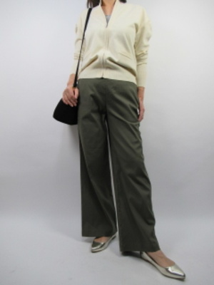 素材は麻を織り込んだ爽やかな生地なので夏までOK。ややフレアなパンツのシルエットは体のラインを拾わないので着ていてとても楽。デイリーにはピッタリのコーディネートです!アクティブ度60%、スタイリッシュ度40%。