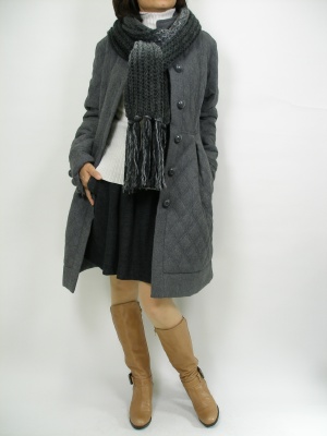 タックで膨らみを持たせたコートはキルティングで見た目も暖か。ウールで作る冬のフェミニンスタイルです!フェミニン度100%。