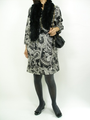 ストンとしたワンピースはタートルを合わせればカジュアルですが、このように一枚で着てファーを付ければゴージャスに!エレガンス度80%、スタイリッシュ度20%。