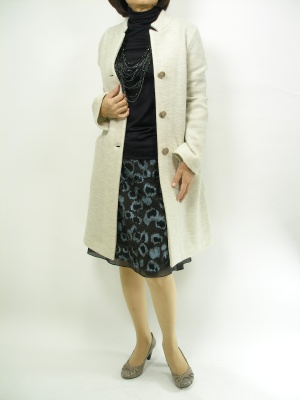 個性的なカットソーとスカートを白のコートでさらりとエレガントに着こなして!エレガンス度70%、スタイリッシュ度30%。