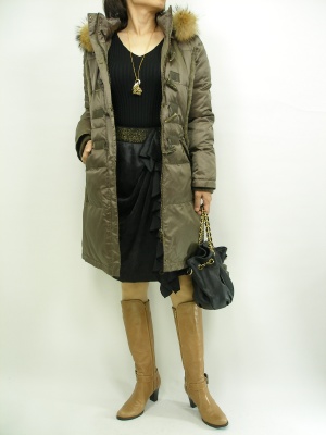 ムートン使いやウエストを絞ったシルエットで大人な印象のダウンのインナーはシンプルニットだけでOK。カジュアルすぎないのが魅力です!スタイリッシュ度80%、エレガンス度20%。