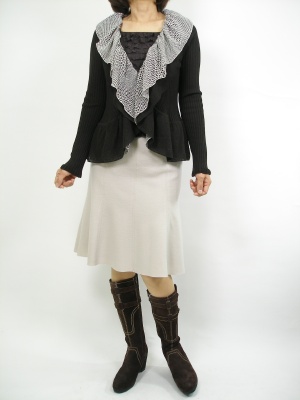 下半身がスッキリ見えるマーメードスカートなら、ボリュームのあるフリルをトップスにもってきてもバランスよく決まります!フェミニン度90%、エレガンス度10%。