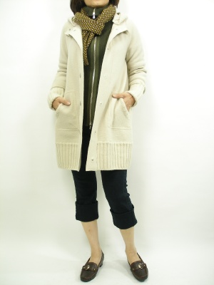 圧縮ニットのコートは暖かいのにスッキリして見えます。この着丈なら、どんなボトムにも合わせやすいですね!アクティブ度100%。