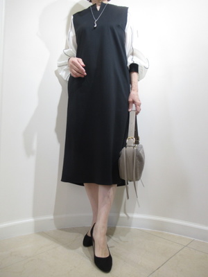 (上品さが際立つ大人のワンピーススタイル)シンプルなブラックなワンピースに、やわらかな配色の袖デザインが映える一着。すっきりとしたシルエットで上品な印象に。きれいめにもお出かけにも活躍する大人の装い。落ち着きの中に女性らしさが光るコーディネートです。