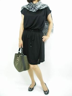 カットワンピースは何かと便利アイテム。小物のチョイスの仕方でこんなエレガントになります!エレガンス度70%、フェミニン度30%。