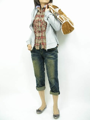 綿シャツ、パーカ、デニム、アクティブコーディの王道です。見え隠れするキラキラが絶妙です!アクティブ度100%。