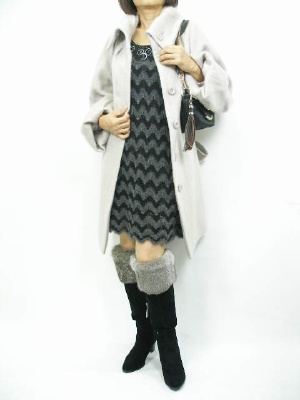 ボリュームスリーブのコートが主役のコーディネート。ブーツで重さのバランスを取って!エレガンス度70%、スタイリッシュ度30%。