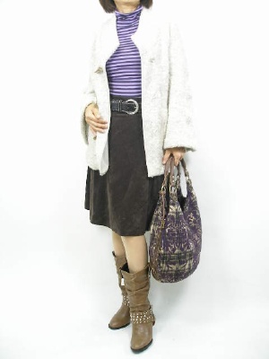 ポンチョ型の可愛いコートをカジュアルスカートでコーディネート。車での移動もポンチョだと乗り降りも楽ですね!フェミニン度80%、アクティブ度20%。