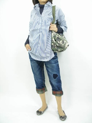 キャサリンハーネルの新型チュニック。スモックのようなデザインがカワイイですね。デニムの折り返しの赤がキュートさをプラスしますね!アクティブ度100%。