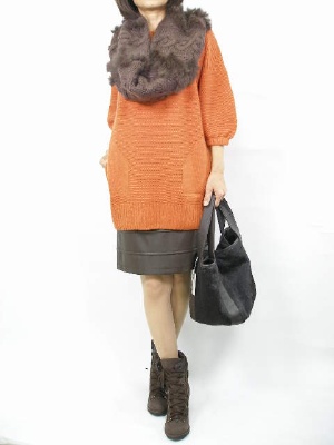 ハードな印象のスカートは、旬のスヌードと丸みのあるシルエットで柔らかい印象になります!フェミニン度80%、スタイリッシュ度20%。