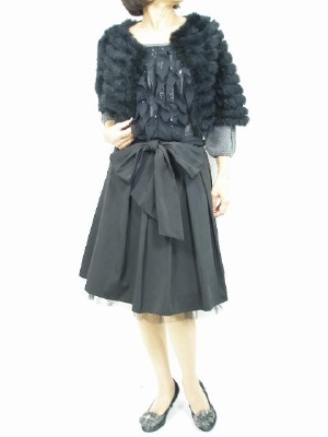 黒×グレー。質感の異なる素材の組み合わせはちょっとしたお席に華やかさをプラス!エレガンス度90%、フェミニン度10%。