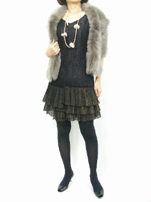 ファーガとてもオシャレな夜のお出かけファッションにこんなワンピースは如何でしょう。華やかなファーでプラスしてみました!エレガンス度100%。