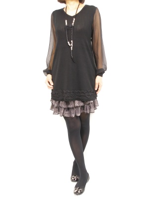 エレガンスなチュニックにティアードスカートを合わせると、まるでワンピースのようです!エレガンス度70%、フェミニン度30%。