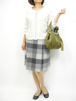 ローゲージニットをウールのスカートで作るちょっとノスタルジックなスタイル!フェミニン度90%、アクティブ度10%。