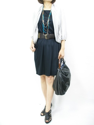 シルバージャケットは夜のパーティに映えますね。小物が生きる黒のハンサムコーディに欠かせません!スタイリッシュ度80%、エレガンス度20%。