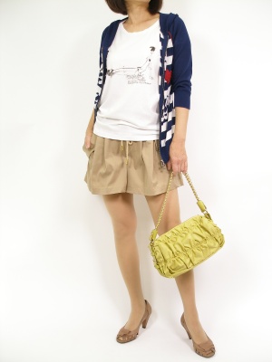 タック入りのショートパンツは、大人可愛く着こなせるアイテム。パーカを合わせてもスポーティ過ぎないのが良い!フェミニン度70%、アクティブ度30%。