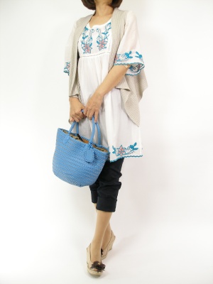 フォークロアなワンピースをデニムではなくキレイ目のパンツを合わせると大人なガーリースタイルに!フェミニン度80%、アクティブ度20%。
