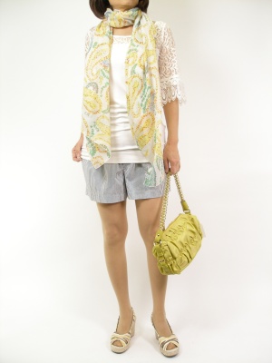 白レースの控えめな肌見せが今年風。ショートパンツでキュートに仕上げました!フェミニン度90%、アクティブ度10%。