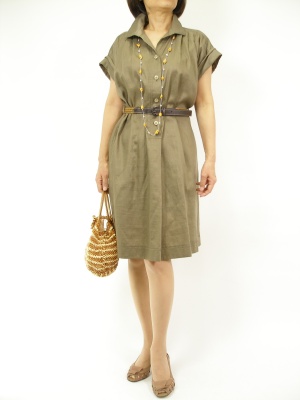落ち着きのあるワンピースもネックレス一つで変身しますね!エレガンス度80%、フェミニン度20%。