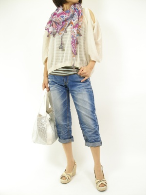 ボーダーのベアトップとセットのニットならシンプルコーディでこんなにお洒落!アクティブ度90%、スタイリッシュ度10%。
