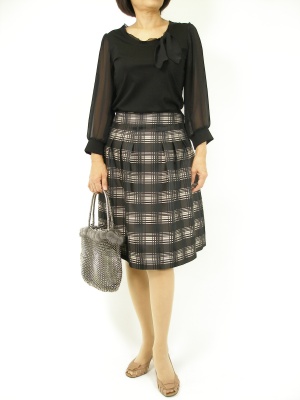 上品な光沢スカートとふんわりお袖がキレイなブラウスはコーディに華を添えてくれます!エレガンス度80%、フェミニン度20%。