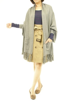 遊び心たっぷりの変形ストールはお袖が通せてずり落ちにくい優れもの。トレンチスカートできちんと感を出せば今年っぽく仕上がります!フェミニン度70%、アクティブ度30%。
