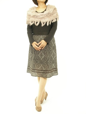 ニットのしなやかさと織りのラグジェリー感が女度UPの上品ワンピース。顔周りは明るいファーで軽やかに!エレガンス度90%、フェミニン度10%。
