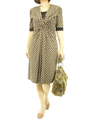 さらっと着られるワンピは安心の膝下丈。胸元にギャザーが寄せてあり目線を上に持ってくるのでバランスが良いですね!スタイリッシュ度70%、エレガンス度30%。