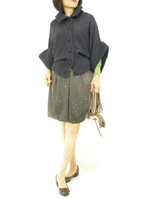 たっぷりお袖からキレイ色をチラリと見せると軽快な印象になりますね。スカート派グリーンをリンクさせてまとまりある仕上がりです!フェミニン度90%、エレガンス度10%。