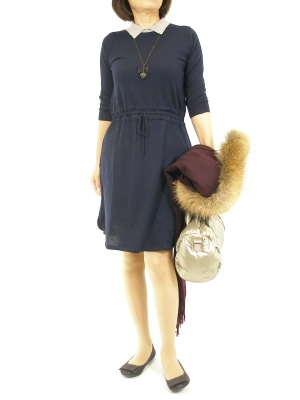衿の小さな処がとてもキュートなニットワンピース。ちょっとしたお出かけも、この時期からはとても重宝する一着です!フェミニン度90%、エレガンス度10%。