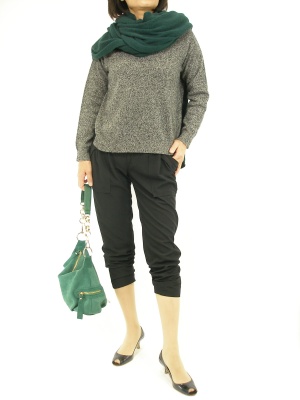 ニットストールは意外に暖かです。シックなスタイルにはゆったり巻き付けて、アウターの代わりに如何でしょう!スタイリッシュ度70%、アクティブ度30%。