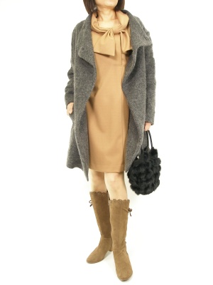 大きなリボンが印象的なワンピース。首元の正面よりやや横の方がバランスがあるので重たく感じさせない!フェミニン度90%、エレガンス度10%。