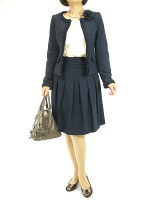 ツイードのJK+スカート。ネイビーは黒より甘く柔らかなイメージの中にキチンとした清楚さが出て式典にピッタリの装いです!