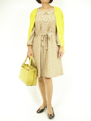 ノスタルジックなベージュの花柄はイエローを効かすと洗練された春の装いに!フェミニン度100%。