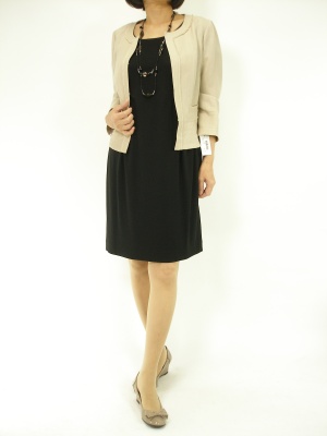 いろんなシーンで使えるシックな黒のワンピース。ジャケットを羽織ればキチンとした印象に!エレガンス度80%、スタイリッシュ度20%。
