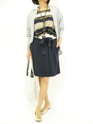 シックな色でまとめた大人のマリンスタイル。サラリと羽織ったカーディガンがワンピースを際立たせます!フェミニン度60%、エレガンス度40%。