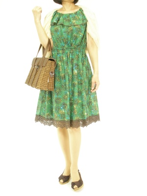 リゾート感たっぷりのワンピースにチュールのボレロを合わせてタウン仕様に!エレガンス度70%、フェミニン度30%。