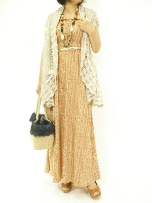 流行りのマキシワンピにロングジレを合わせるとスラリとして見えます!アクティブ度60%、スタイリッシュ度40%。