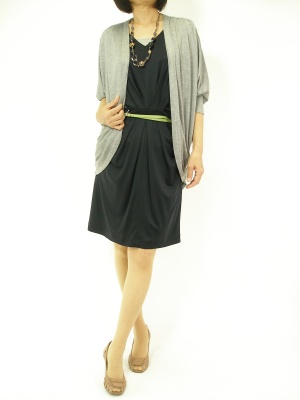 ドレープが美しいワンピとカーディのコーディネート。楽な着心地なのにとてもエレガントです!エレガンス度60%、スタイリッシュ度40%。
