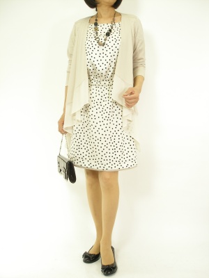 ブラウジングワンピにサラリとしたカーディガンを羽織ってエレガントに。ワンピースはリバーシブルです!エレガンス度70%、フェミニン度30%。