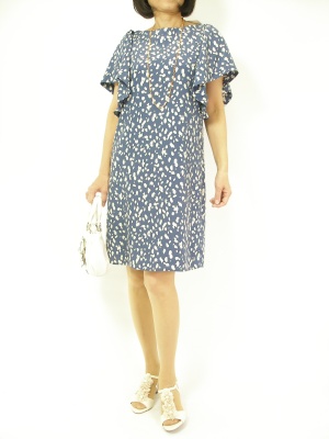 スモーキーなブルーにはキレイ色のアクセも良く映えます。ゆったりワンピは楽なのにエレガントに見えるのが魅力!エレガンス度80%、フェミニン度20%。