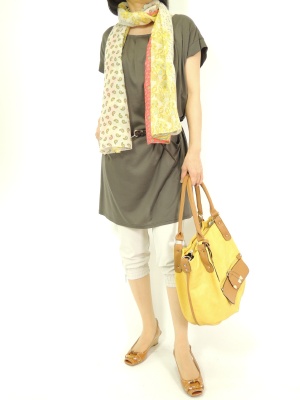 ストンとしたカットソーワンピもベルトとストールでイメージがガラリと変わります!フェミニン度60%、スタイリッシュ度40%。