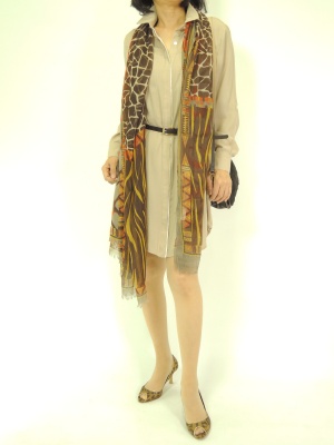 シャツワンピはアニマルストールをプラスするとサファリ風に!スタイリッシュ度90%、エレガンス度10%。