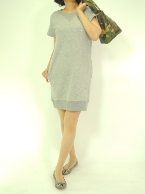 ラインストーン付きのキュートなスエットワンピースはサラリと一枚で着こなして!アクティブ度70%、フェミニン度30%。