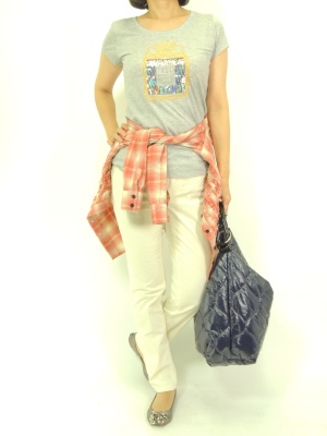 チュニックシャツでアクセントを付けたカジュアルコーディ。さりげなく腰回りをカバーしてくれますよ!アクティブ度100%。