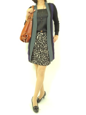 流行りのジャガードスカートは、豹柄なら辛口なイメージ。ロングカーディをプラスしてタイトにまとめてみました!スタイリッシュ度80%、エレガンス度20%。