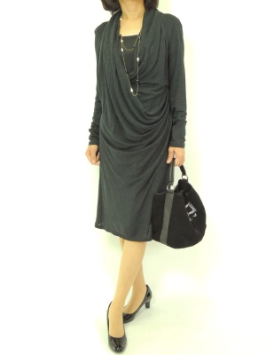 ドレープたっぷりのジャージワンピースは何も足さなくてもお洒落に決まります!エレガンス度90%、スタイリッシュ度10%。