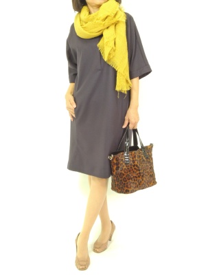パープルとイエロー、反対色のコーディネート。シンプルなアイテムどうしでも色の使い方で華やかになります!フェミニン度60%、スタイリッシュ度40%。