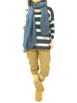 カジュアルなゆるコーディはストールで引き締めて!アクティブ度100%。
